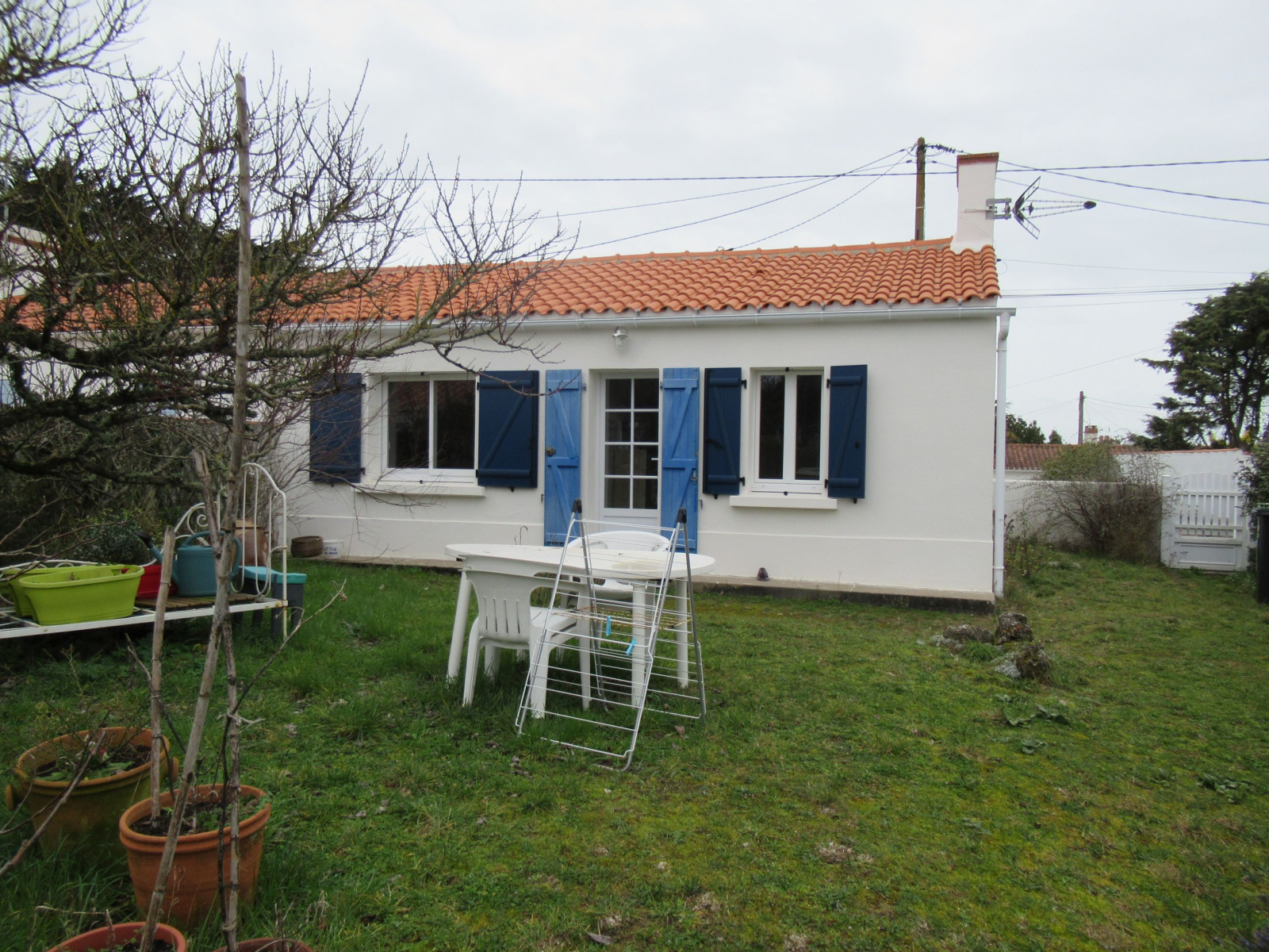 Dans le bourg, côté dunes, à 300 m de la plage, jolie maison composée de : séjour (cheminée) cuisine, salle d'eau avec wc, 1 grande chambre, sur un terrain de 435 m2.