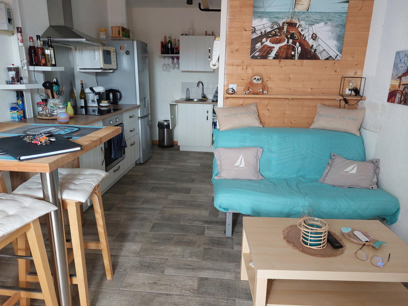 A 2 pas du port de L'HERBAUDIERE et de la plage, studio avec coin cuisine , salle de bains avec wc, terrasse.