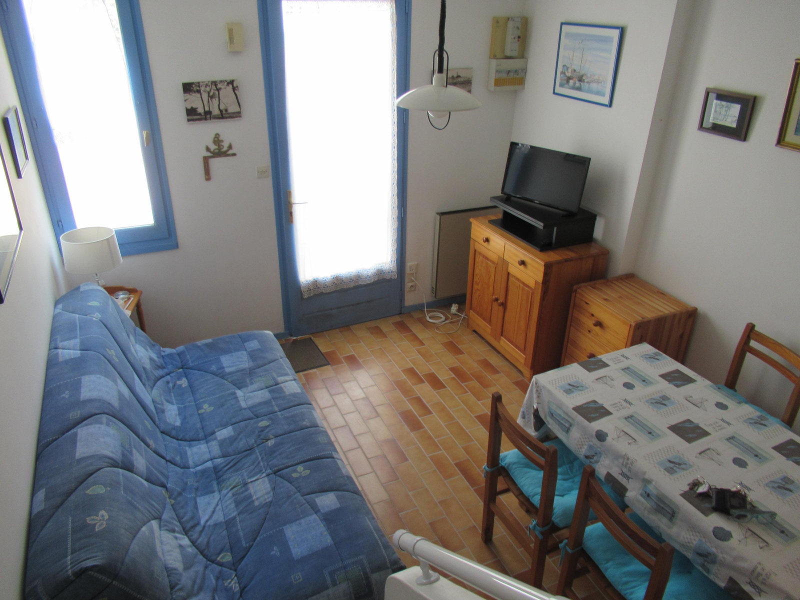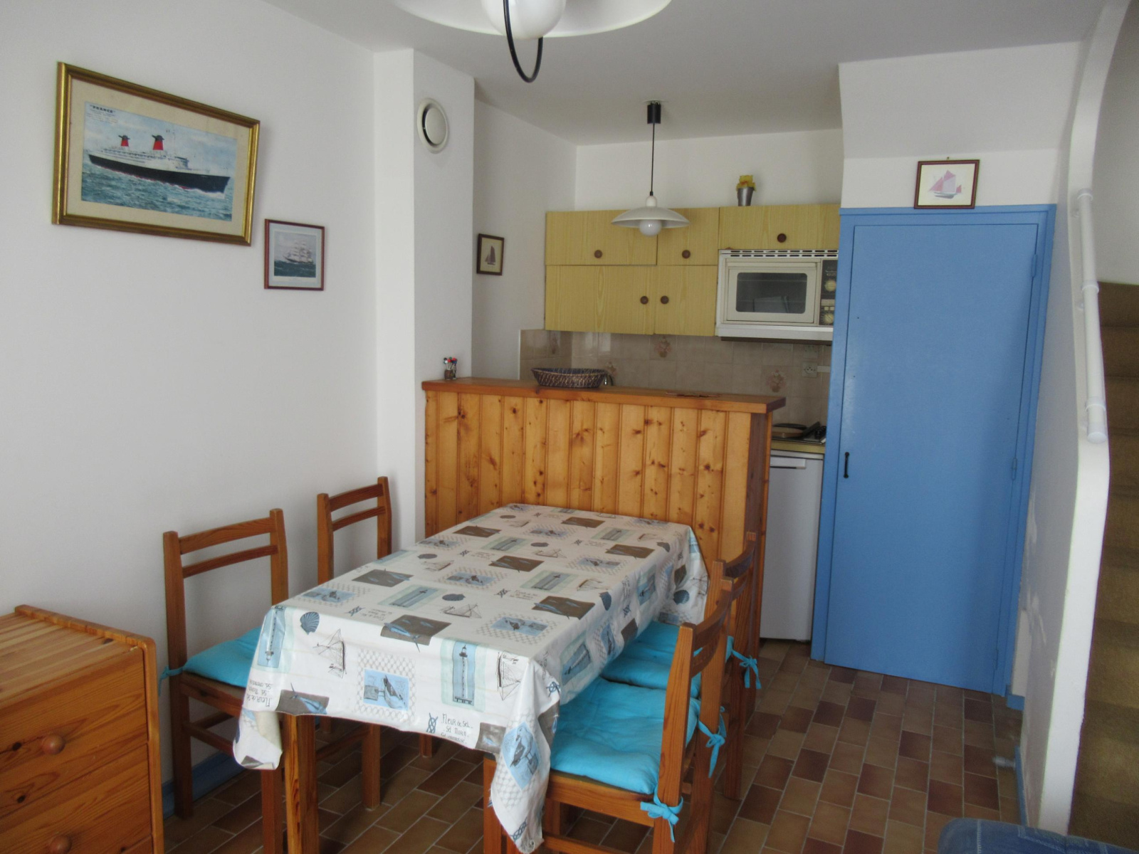 A 50 m de la plage, jolie maisonnette, composée de: RDC : séjour coin cuisine, garage. Etage: 1 chambre avec mezzanine, salle de bains avec wc, jardinet avec terrasse, garage indépendant